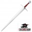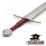 The steel pommel and guard provide solidity and durability, ensuring that this sword is not only visually striking but also functional. Additionally, it comes with a leather sheath with a wooden core, reinforcing its authentic medieval style.