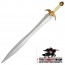 The LARP short sword "Ysaria" is an elegantly designed weapon, ideal for fantastical roles such as elves. It stands out with its detailed craftsmanship and the golden embellishment on the hilt. The blade is slender and slightly curved, giving the sword a graceful appearance. The hilt is kept in a light colour and provides a secure grip due to its ergonomic shape. This sword is perfect for characters where aesthetics and functionality are equally important.