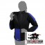 It’s a bicolor jacket with features typical for the PLUS jackets: bladecatcher, adjustable belt on the back, mounting points on elbows, black trim on the front, a double fastening (velcro + zipper), and side slits. Sections in the blue color are placed on the abdomen, shoulders, upper part of back, and on the sleeves under the elbows.